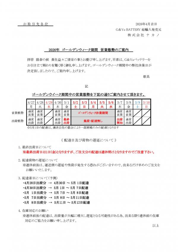 ■ゴールデンウィーク休暇期間